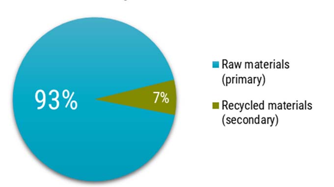 The proportion of recycled materials used in the global economy is currently around 7 % and continues to fall.[ii] This means that the majority of the material stock that is imported into the economy each year comes from new raw materials.