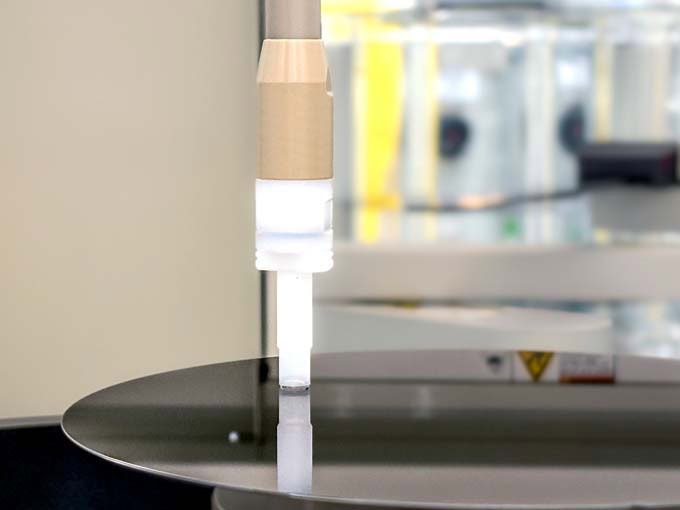 Tubo di scansione con goccia trasportata mentre il wafer ruota per l'analisi della superficie. (Immagine: Fraunhofer IPMS)